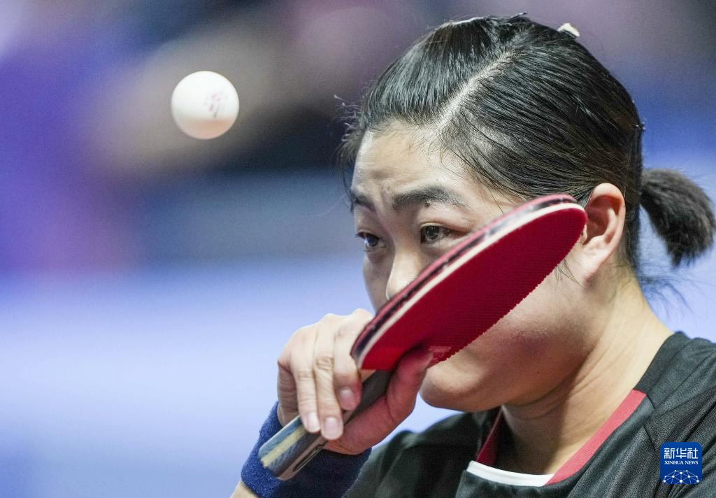 12月11日,江苏队选手周影在TT4女子单打四分之一决赛中庆祝得分。最终,她3比1战胜北京队选手张淼。