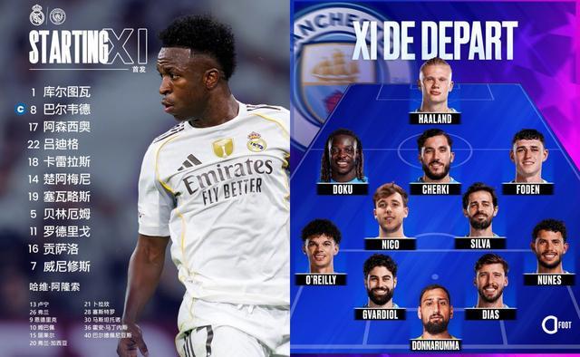 皇马此战派上贡萨洛-加西亚和维尼修斯搭档双前锋,罗德里戈和贝林厄姆分列两侧,姆巴佩因伤坐在替补席。曼城这边,多库、哈兰德和谢尔基组成进攻三叉戟。